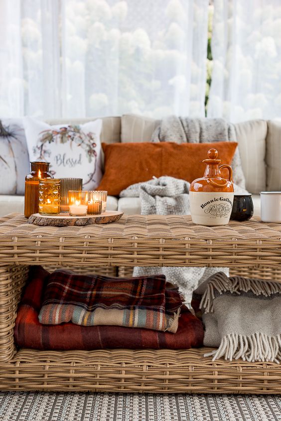 Since the air in autumn tends to be cold, we need items to make ourselves feel warm. A blanket is one of the items that can be used to warm the body. With this, putting a blanket under the table becomes an interesting idea. Blankets with calm and beautiful colors will be so interesting to look at.