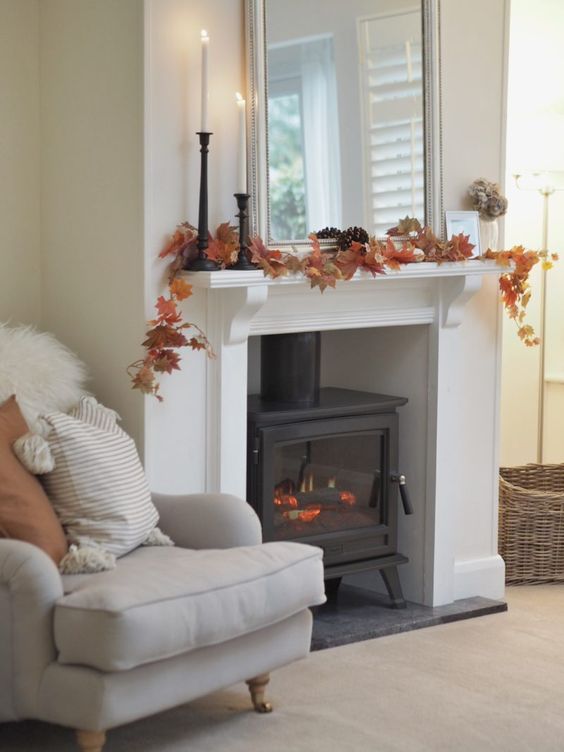Not only for heating, the fireplace can also be used as a media for decoration in order to make the living room beautiful. Add some decoration in the form of dried vines is a right idea. The dried vines will emphasize the autumn vibes in the living room. Candles are also an additional decoration so that the fireplace looks beautiful. The light from the candle can give a warm feel that is so comfortable in the living room. It would be great if you use aromatherpy candles to make the living room a place for relaxation.