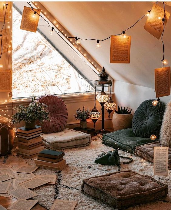 String light is a perfect decoration for living rooms during autumn. The use of string lights with warm light can make the atmosphere and feel of the living room feel soothing and relaxing. In this way, the living room will feel so comfortable.