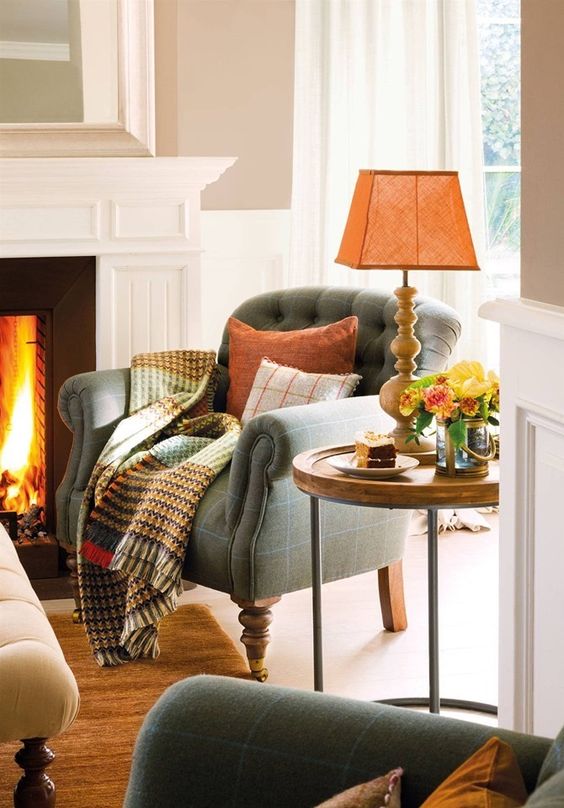 Enjoying the fireplace in the fall can make you relax. Reading a book or drinking warm chocolate by the fireplace really helps make yourself fresh again. With this, you can add a soft rug or a small stool near the fireplace. Use a soft rug with a bright neutral color, such as white. For added warmth, you can use a wool blanket.
