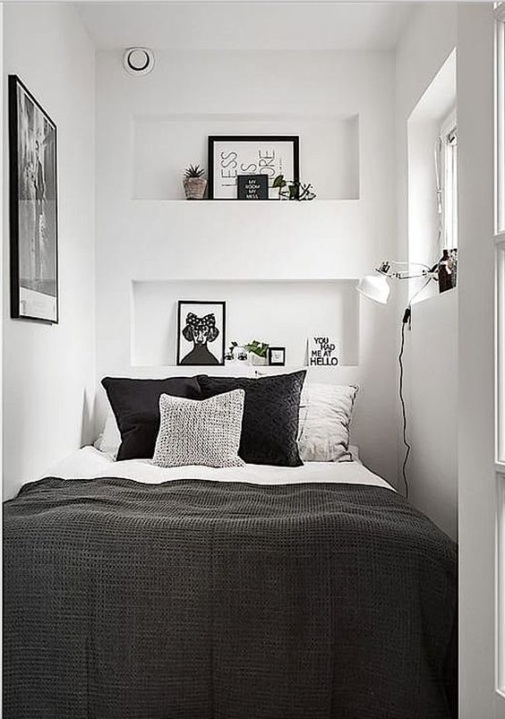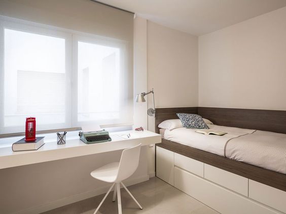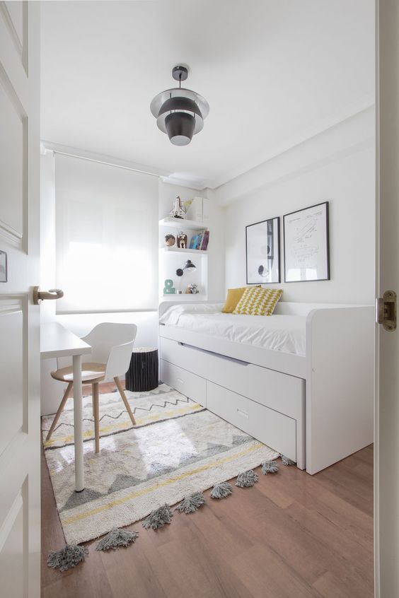 The next most important stage in a small bedroom makeover is to make the bedroom look bright. Why is it important? A small bedroom can easily feel small, cramped, and stuffy. However, this can be overcome by making the bedroom appear bright. Besides using white as the basic color of the bedroom, you also need to make the bedroom appear bright with the help of light.