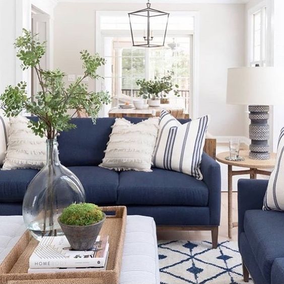 Avoiding complicated and too crowded motifs is the main way to make the living room look simple and sweet. The presence of white cushions with blue stripes is the right idea to be applied to a simple coastal living room.