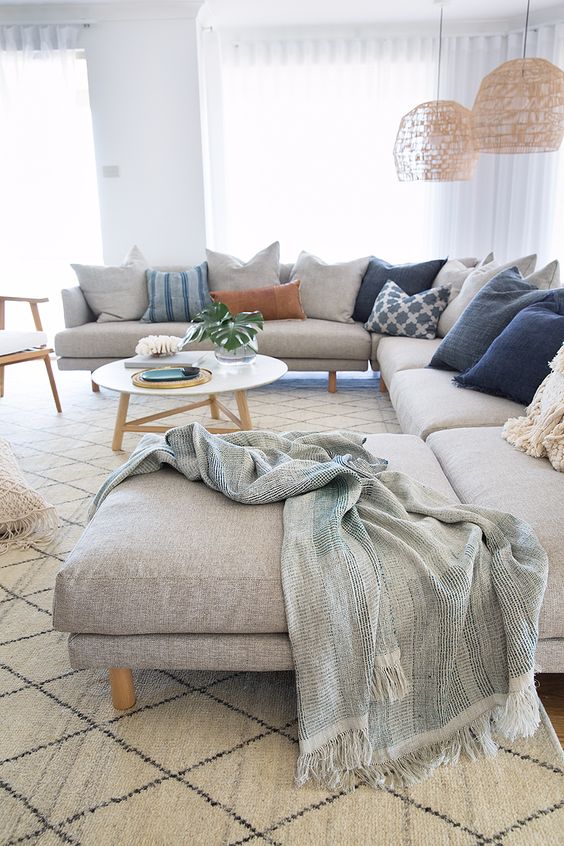 When we feel cold, blankets are the right item to use to warm the body. However, this doesn’t mean that the blanket can only be used for winter. When applying Coastal Design into the living room, blankets become a supporting item that can bring a warm and comfortable atmosphere to the living room. The gray blanket looks soft and calm when placed on a white sofa.