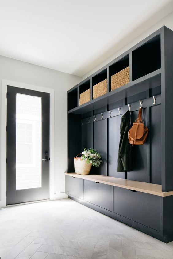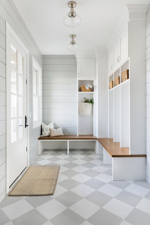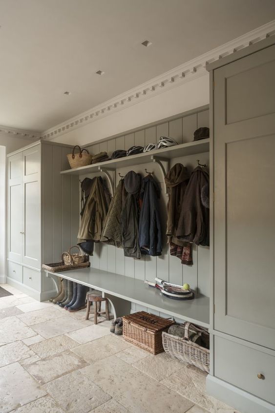 If there is more space in the mudroom, you can add cubbies or lockers to put the shoes and coats.