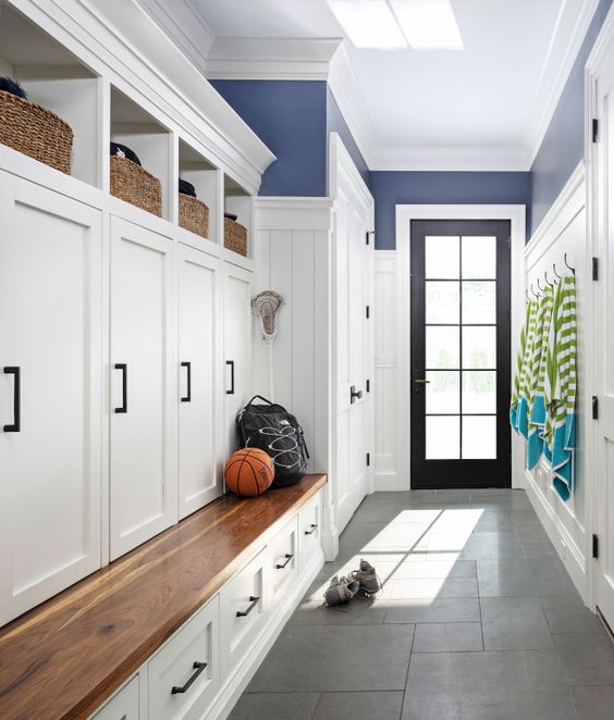The mudroom is not just a place to take off your shoes or coats, but also to store some other dirty items, such as balls. So, if there is more space in the mudroom, you can make it a storage area.