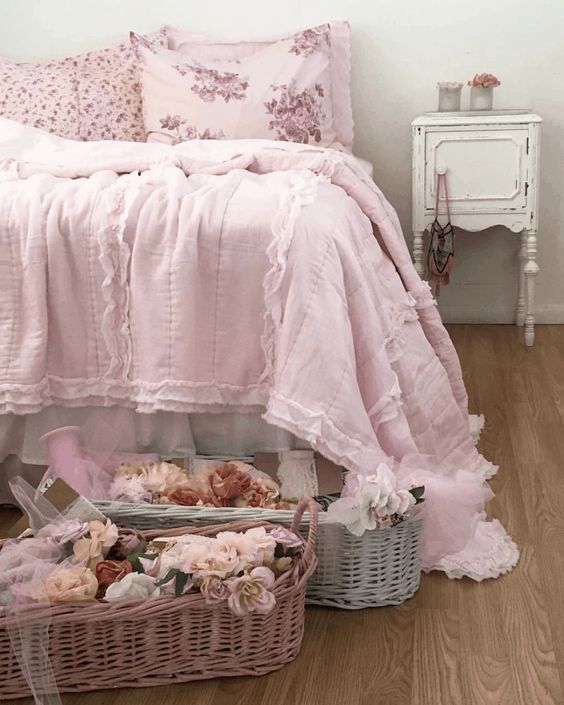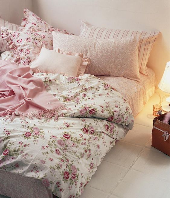 So that the feminine style looks so thick, use fabrics with floral motifs. Adding a thick blanket with beautiful floral patterns can make the bed look beautiful. Not only that, the bed will also feel softer and much warmer.