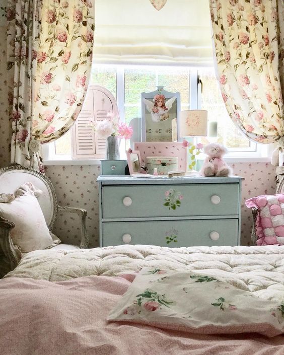 Bringing two to three pastel colors into a Shabby Chic style bedroom makes the bedroom look more colorful but still soft. Here are the pastel colors that can be used for Shabby Chic bedrooms.
