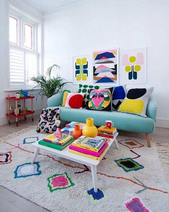 The use of colors in the Retro Design is arguably quite bold. Because the colors used in this design are bright colors that are asymmetrical so the appearance of the room will be colorful and attractive.