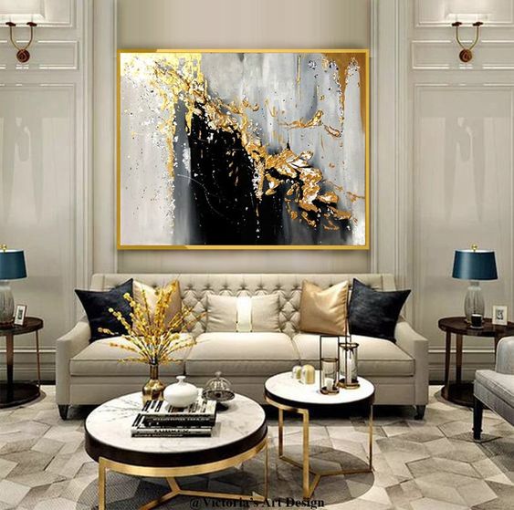 Gold color has become a characteristic of a luxurious and expensive look. The use of living room decorations in the form of paintings that contain gold is an interesting idea. Giving a gold-colored frame to a painting can also add an eccentric and luxurious look to the living room.