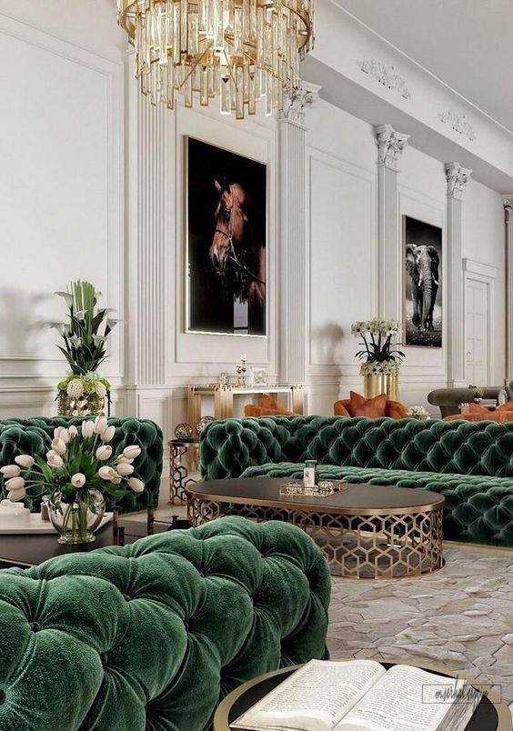 Chesterfield sofa in green looks so shiny. The dark green color applied to the sofa makes the chesterfield sofa look dominant in the living room. The presence of the chesterfield sofa in the living room is very influential in presenting a luxurious and attractive appearance.