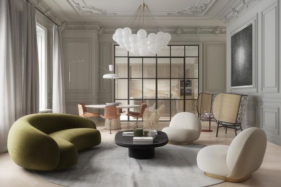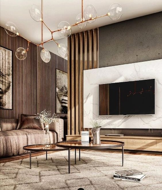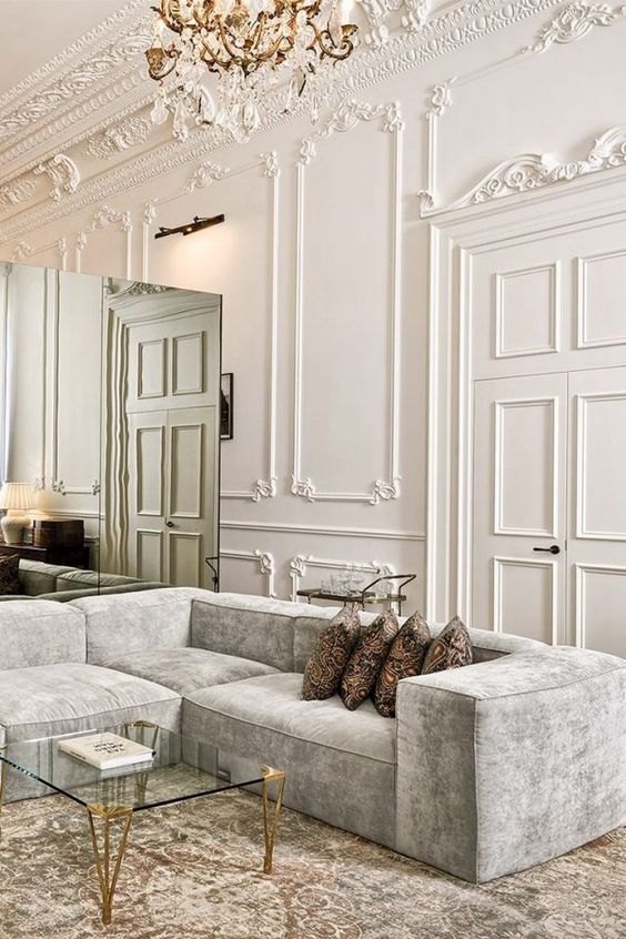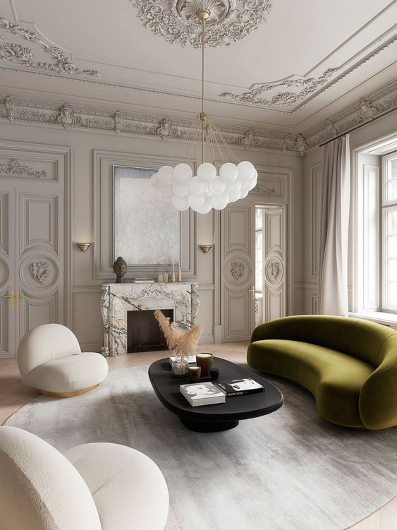 Beautiful Simple Luxury Living Room with Ceiling and Wall Engraving