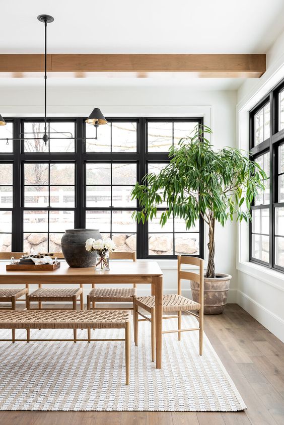 Simple Dining Room with Big Plant Decor