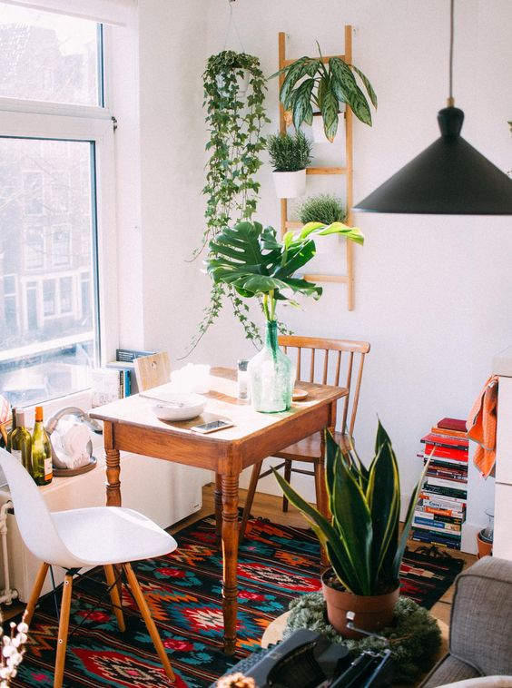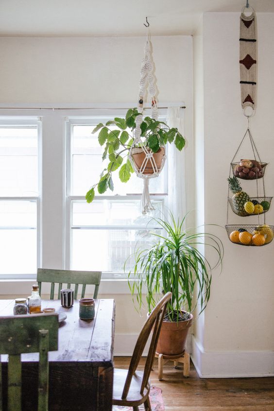 Hanging Plants is Perfect for Small Dining Room