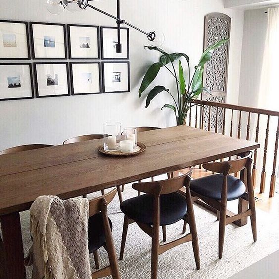 Hang tree branches from the ceiling. Then hang some small plants and lights on the tree branches. In this way, you will have an attractive and fresh dining room.