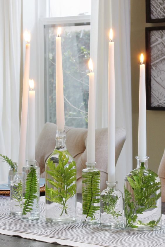 For a more attractive look, you can fill the vase with green leaves and water. Then put the candle into the vase. Candlelight will go a long way in bringing out a very calm and warm atmosphere. In this way, the dining room not only looks attractive and fresh but also feel comfortable.