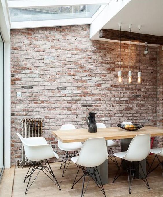 The application of the exposed brick wall does not always make the room look sharp, striking, and dark. For those of you who like a bright appearance, plaster brick walls are the right idea to apply to the interior of the room.