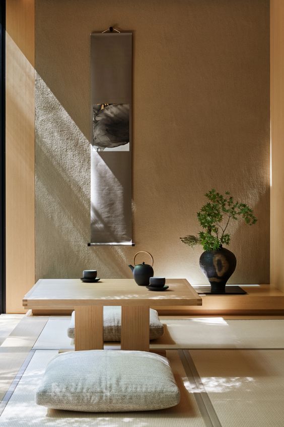 Wood is a natural element used in Japanese-style houses. If you are interested in bringing Japanese style into the living room, you can use wood in light colors. The use of wood brings a very warm and comfortable atmosphere. Although the appearance of the room looks simple, using wood elements, a simple room will look sweet, soft, and not stiff.