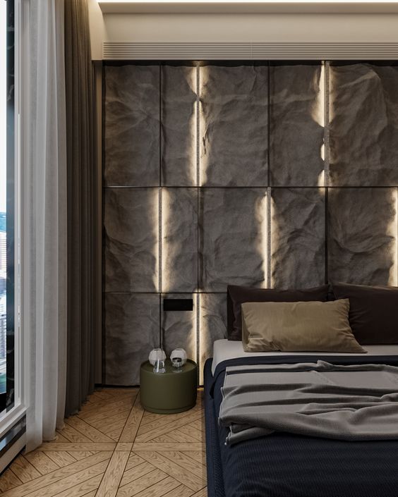 The natural stones wall is an interesting idea to give a modern look to a bedroom. Applying a natural stone wall to the side of one bedroom wall is enough to make the bedroom look attractive and natural. You also do not need a wall decoration to make it look attractive. So simple, right?