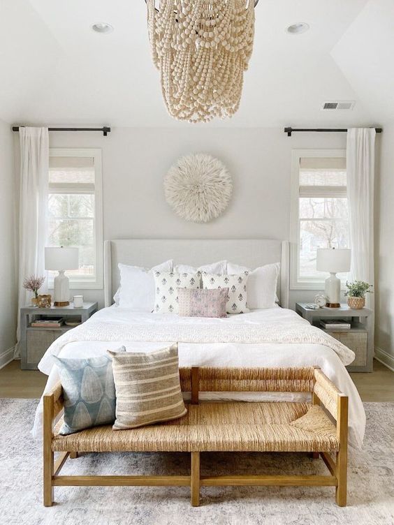 Cozy Rattan Bench in The Simple Bedroom