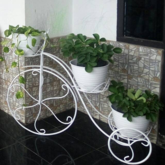 A flower rack with a bicycle design is very attractive and unique. This shelf is made of scrap iron and painted bright colors. This shelf is suitable for you to place in the living room. With a design like this picture, your guests will be happy to see it. Hopefully, this flower rack can make you cheerful and proud.