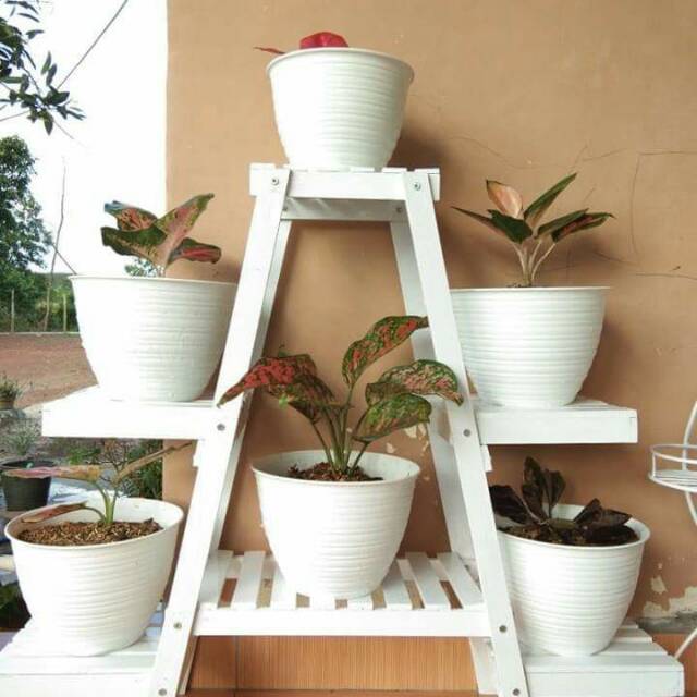 This staircase model bright flower rack looks antique and unique. However, this bright flower rack is suitable for those of you who have a small terrace. With this flower rack, your terrace will look artistic and certainly make you cheerful all the time while enjoying your favorite flowers.