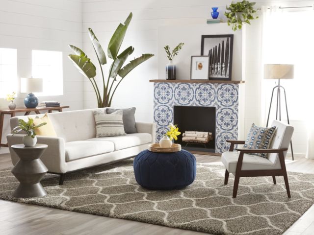 The display of the blue carpet with floral motifs in this minimalist living room looks beautiful and fun. Maybe you haven’t designed your living room as in this picture. But to make your living room more attractive, you should also have brilliant ideas, inspiration, and design concepts to choose a carpet that suits your taste so that the results are satisfying. Therefore, we hope that a color rug like this picture can provide additional ideas to make your living room look more attractive.