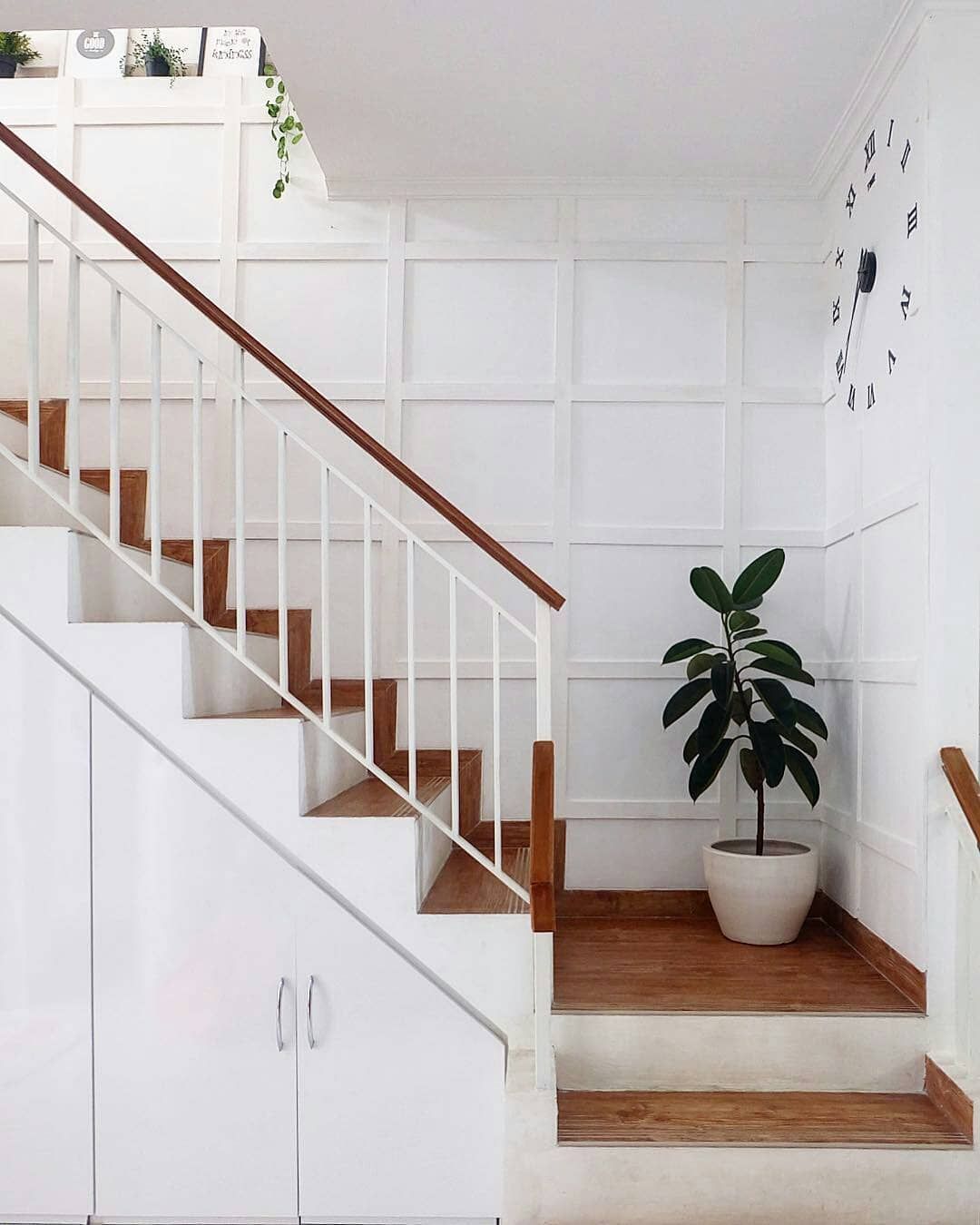 Then, to add to the beauty of the stairs, you can put flower pots next to the stairs so that the appearance of the stairs is not monotonous. Then the room will look more beautiful and pleasant. Then, the advantage of this design is that your house looks clean and bright so that you are easiness, safer, and more comfortable when going down and upstairs.