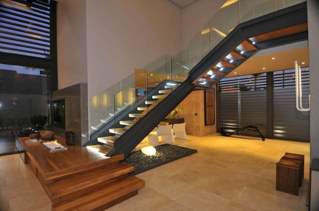 Modern staircase design with glass railing