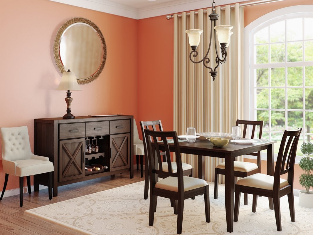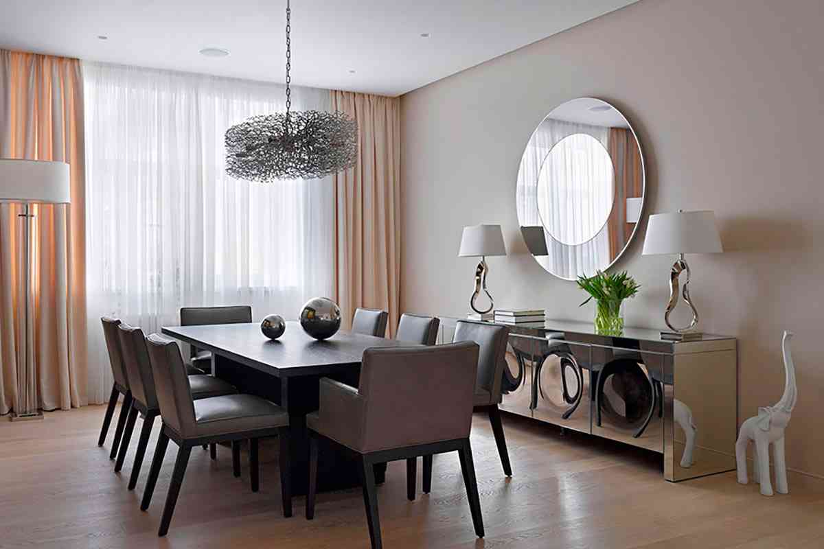 Interior decoration of a beautiful dining room is not only with furniture sets. For that, you can put a mirror set on the wall of your dining room. This mirror set can make your dining room more pleasant. Therefore, to make this dining room look extraordinary, you can put this mirror set like this picture. With this round mirror set, the interior of your dining room will look more pretty and make you happy to eat with your family.