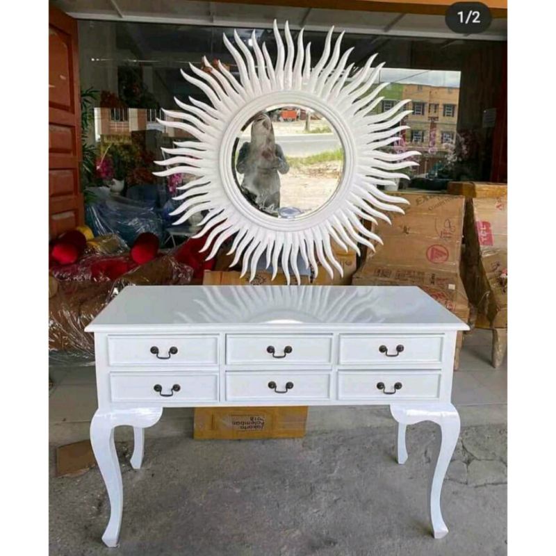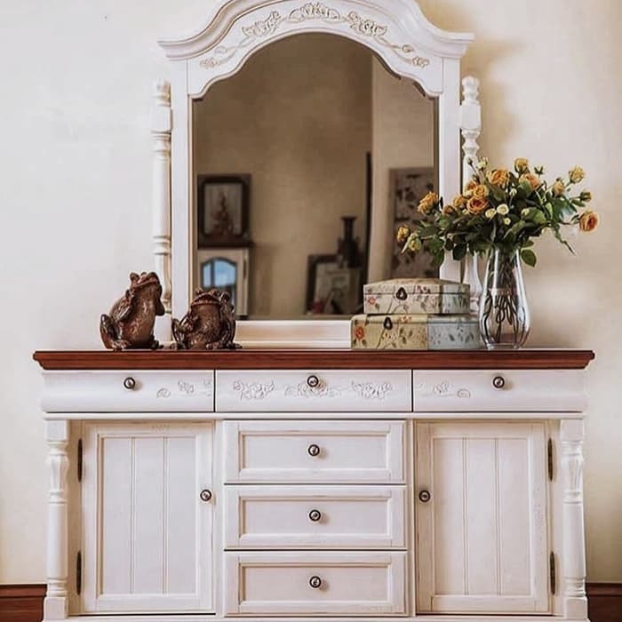 The mirror frame and table must design according to the table and the color of the frame, and the table must match so that it looks more attractive. That’s why it’s called a set mirror.