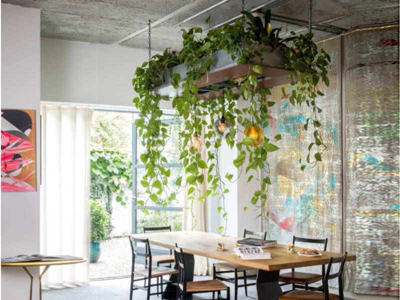 You can hang the pot on the ceiling right on the dining table. This is a really great idea. You can enjoy the atmosphere while eating your food there. Try to use vines because it will affect the appearance of your house.