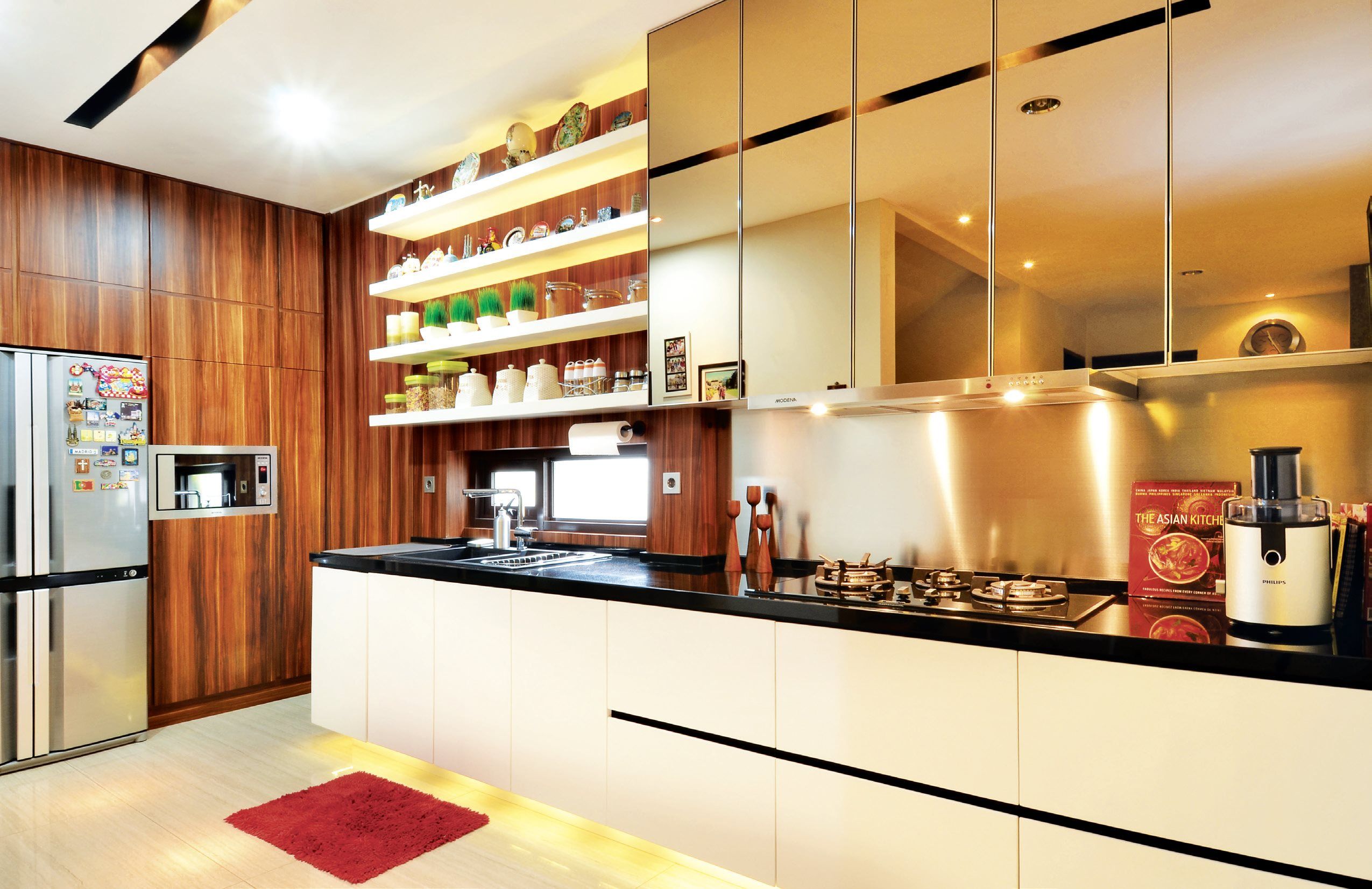 Of course, you are rarely to find a kitchen complete with mirrors. We think that you only to know that the mirror only installs in the bedroom or bathroom. However, everyone has a different way of giving their impression of their kitchen. Even though glass and mirrors have been installing in the kitchen can make the room wider. Besides that, the mirror can be a backsplash of the mini kitchen set wall or the cabinet door from the kitchen set.