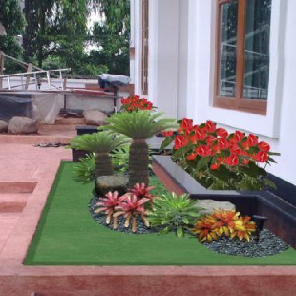 Having a beautiful small garden in front of the house should be made with a modern and artistic design. So you no longer need to go out of the house to get this exotic impression. To beautify the exterior garden of your home, you must decorate it with trees, green grass, natural stones, beautiful flowers, and fish ponds so that it feels like a vacation in the open.