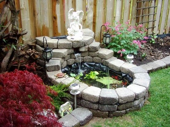 The advantage of this small garden is decorative with fishpond, fountain, flower pots, and natural stone, and this design makes your small garden of the house look beautiful.