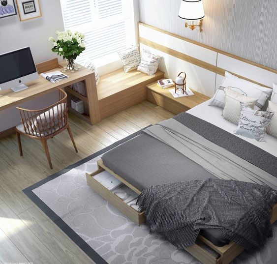 To create a comfortable minimalist bedroom, of course you can’t use careless decorations. To create more free space in the bedroom, use items that are multifunctional, such as mirrors.