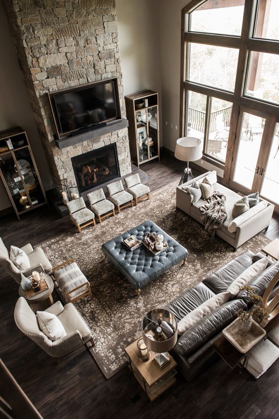 For large living rooms, use a sofa made of fabric so that a warm atmosphere can be present in the large living room and make this room feel comfortable. Choose a large sofa to fill the space in the living room. You can use more than the sofa if possible. Chesterfield sofa is one type of sofa that can be used for large living rooms. Using a chesterfield sofa can make a large living room look more luxurious and elegant.