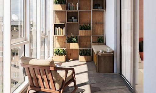 Do you like relaxing while reading? If so, then this balcony design is perfect for you. As seen in the picture above, there are bookshelves and lounge chairs for you to read comfortably on the balcony area of ​​the apartment. Then, use a cupboard to store books or stationery so that your design is more aesthetic so that the balcony looks more beautiful.