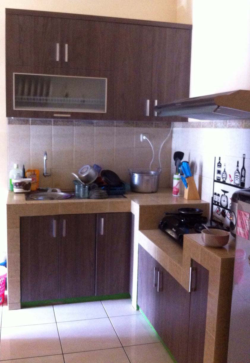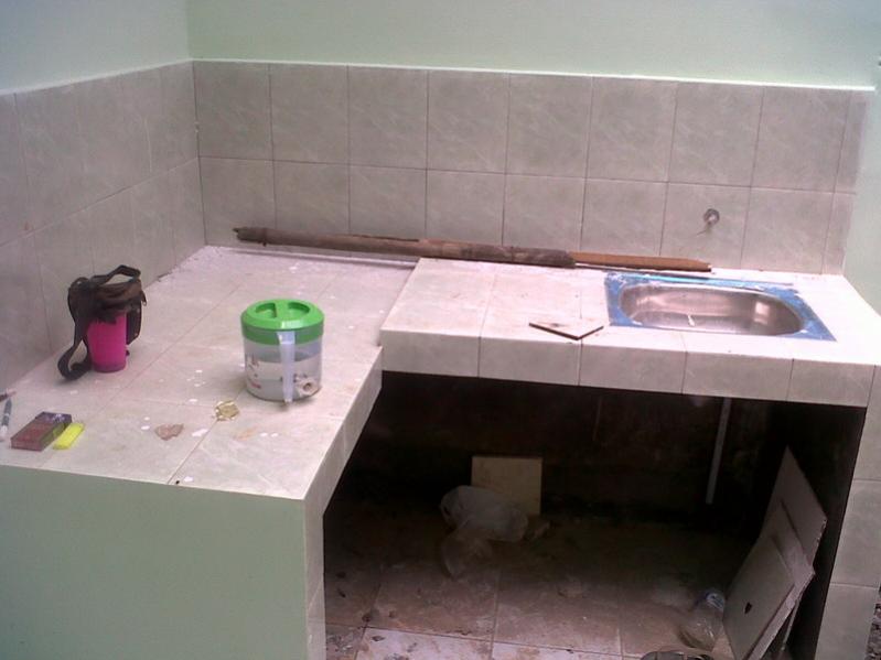 You can see in the picture kitchen room are still renovation. Arranging wall tiles on the kitchen table must design according to design. This kitchen space previously consisted of walls and was not yet full of light. In this way, we hope that the kitchen space will be brighter and the interior will look more attractive. Judging from the material used, it is not too luxurious, and the kitchen wall is painted in a minimalist bright white color. In this way, this minimalist living room will look spacious and not narrow.