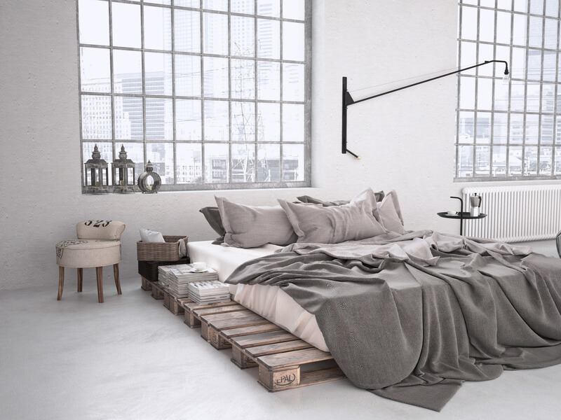 If you have a simple bedroom, to make it looks industrial, you can use a wooden pallet bed. It is perfect. Your room will look more attractive.
