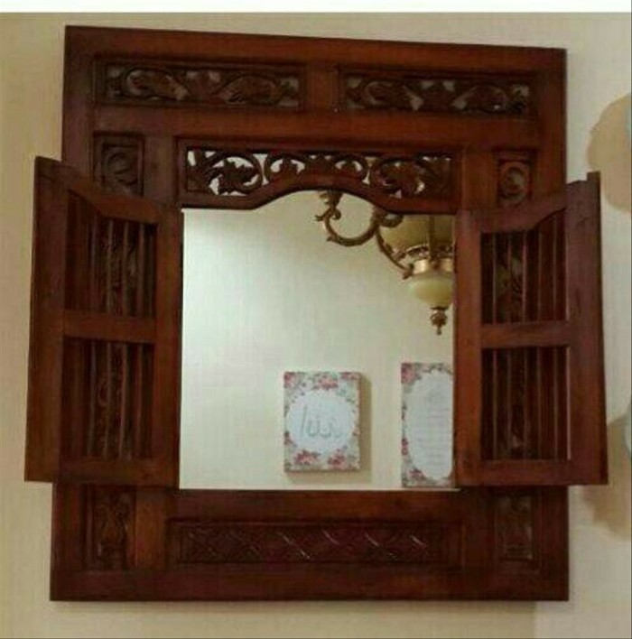 Decorating the living room with this carved mirror can also be a perfect idea. The teak mirror in this picture is very suitable to be installed in the living room.