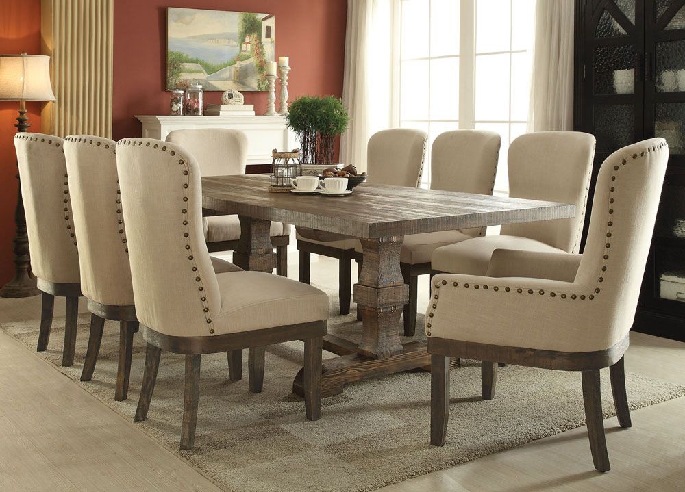 The appearance of this one dining table does seem luxurious. The dining table made of teak wood and super foam wrapped in a beautiful cream color cloth then makes everyone who sees it will be interested. For those of you who have a large dining room, of course, this table is perfect for you to gather to eat with your family while enjoying the food served.