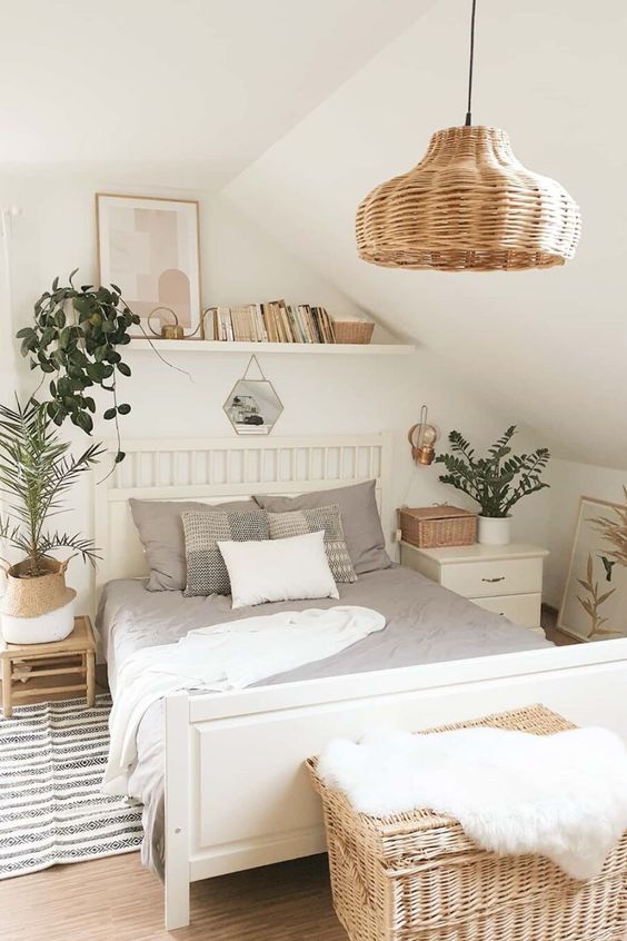 Plants in the bedroom is a great decoration idea to make the bedroom look beautiful also fresh. The green color of the plants also makes the bedroom feel calm and soothing. It is so good for you who want to relax in your bedroom.