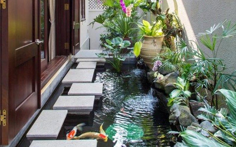 Therefore, gardens and fish ponds are natural therapies that can make you happy and cheerful. As we know, many people make fish ponds in front of their homes. So they have entertainment when they come home from work. Besides, this design can also make your home look beautiful and charming. If you like to decorate a fish pond at home, you can make it immediately and makes the heart peaceful.