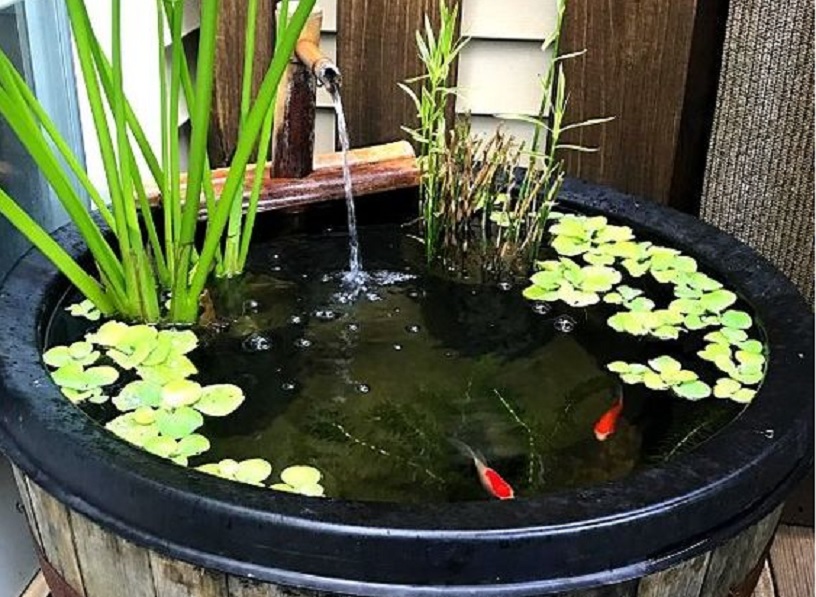 This fish pond looks small and unique. The shape of this fish pond is like a flowerpot. Then, the surface has made of wood. However, it’s a unique fish pond, is small, and does not take up space in the home area. Then, make people happy to make it as a home decoration. This wooden fish pond circle is made of iron and decorated with flowers that can grow in the water. Of course, this fish pond is only for small size fish. With a fish pond model like this, the front view of your house will look unique and fun. Hopefully, this pool model can make your stress and dizziness go away.
