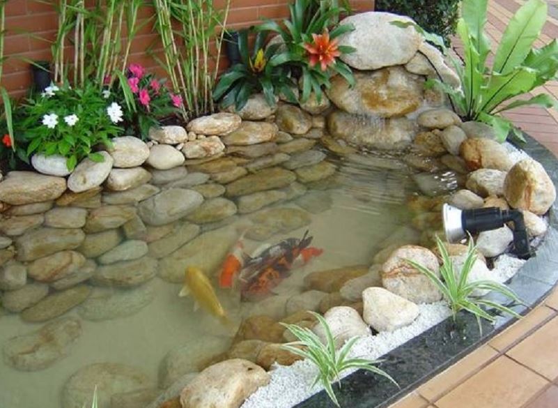If you have limited land in your home, you can make a fish pond like this model. But don’t make the mistake of arranging the natural stone because it can make the pool look messy and unattractive. Then for a more artistic look, add accessories such as fish toys and shower water.