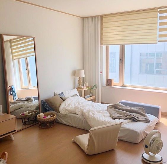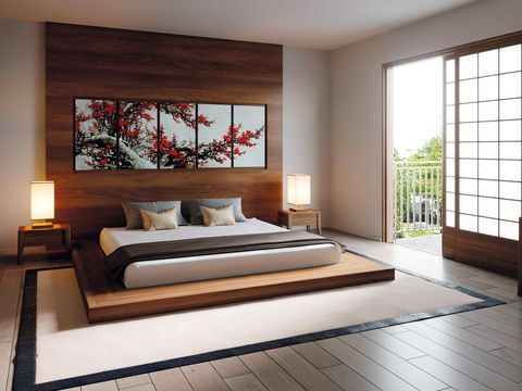 Japanese people really pay attention to every detail of the space in the room when they decorate the room. In the bedroom, the use of a bed frame is considered to be able to make the bedroom feel cramped and small so that the bedroom will be uncomfortable. Therefore, the bed on the floor is the hallmark of a Japanese-style interior. To make the room feel warm and comfortable, they usually add wood to the bottom of the mattress.