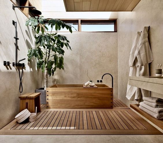 The natural element present in Japanese-style designs is plants. Plants are items that can bring a calm and fresh atmosphere into the room so that the room will feel very comfortable.