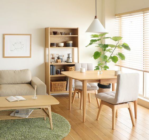 In the Japanese-style minimalist apartment, the lights used to illuminate the apartment are warm lighting. Warm lighting on wood will make the apartment feel very calming. The appearance of the apartment will also look calm and beautiful.