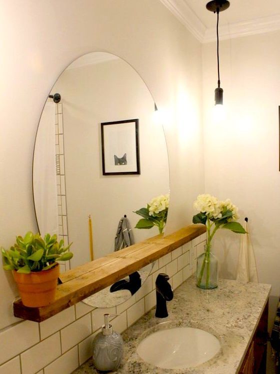 Giving green nuances is an alternative to make your bathroom feel fresh. Small plants used in the bathroom can be placed on the floating wall shelf. This small plant will be more visible and make the bathroom look aesthetically pleasing and attractive.