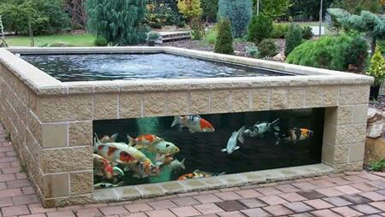 The fish pond in front of the house with an aquarium style